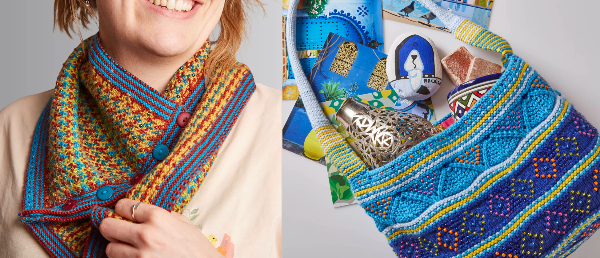 Receive a complete knitting kit containing balls of premium quality yarn and embellishments. You can also join using your own materials.